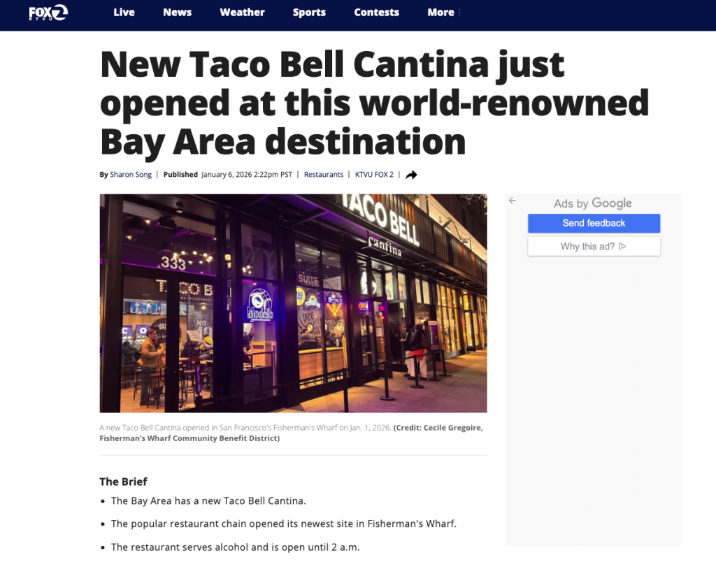 For the Fisherman’s Wharf market entry, it was not simply about creating awareness for the new location. Restaurants typically only compete with other restaurants, but Taco Bell Cantinas faced an additional challenge — competing with itself, or rather, its parent brand. Consumers needed to know why Taco Bell Cantina was not the average Taco Bell. Alongside accentuating the revival of the Wharf with the new Cantina, we focused on reminding fans of the similarities they know and love while emphasizing the differences in ambiance, features and menu.