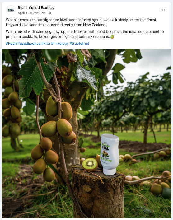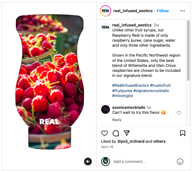 Reàl Infused Exotics offers an upscale collection of fruit-infused purees designed to add bold flavor to almost anything. We celebrate the unique charm of these artisanal syrups, crafted from the world’s finest fruits and 100-percent pure cane sugar. Our social media narrative highlights the brand’s innovative spirit and mixology expertise, inviting culinary creatives and cocktail enthusiasts to explore unparalleled flavor experiences.